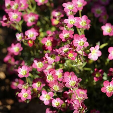 Popular, matt-forming, evergreen alpine that looks well in a rockery or as ground cover and edging to a well-drained border. Upright stems produce star-shaped pink flowers in late spring/early summer.
